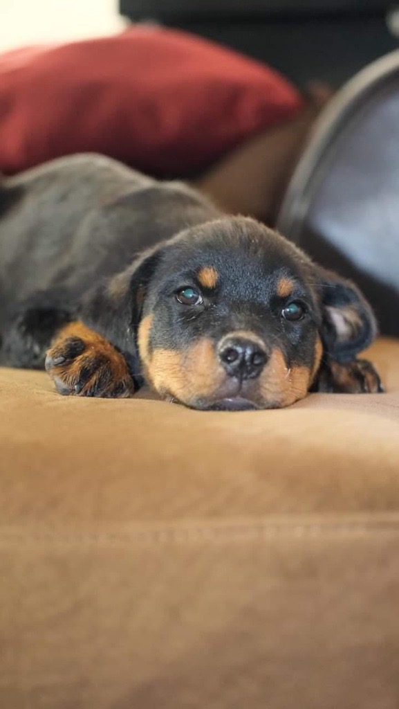We breed beautiful purebred German Rottweiler puppies. ❤️ These pups are raised with love and care — healthy, confident, and full of personality.